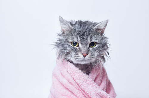 Wenn Ihre Katze in einer schlammigen Pfütze gelandet ist und ihre fabelhafte Zunge ihre Arbeit nicht gut genug gemacht hat, versuchen Sie zuerst, den größten Teil des verkrusteten Schmutzes mit einem feuchten Tuch abzuwischen, und dann, wenn die Katze noch nicht sauber ist, können Sie sie baden. Wenn das Fell Ihres vierbeinigen Freundes von Parasiten befallen ist, fragen Sie stattdessen Ihren Tierarzt um Rat, der Ihnen verschiedene Behandlungsmöglichkeiten anbietet, mit denen Sie vermeiden können, es baden zu müssen.